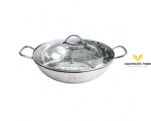 Chảo Lẩu Xào 3 Đáy Nắp Kính 32cm