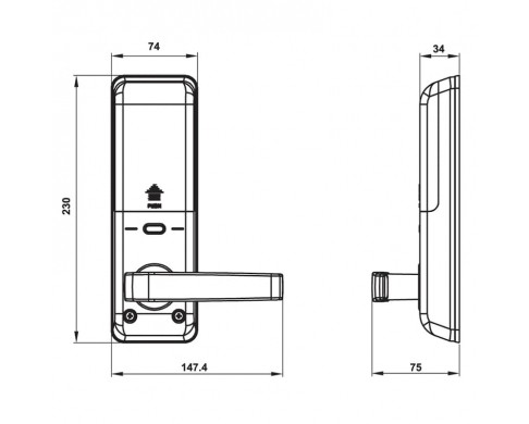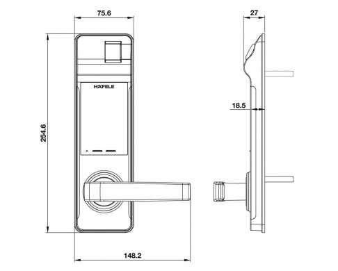 + Kích thước thân khóa ngoài: 75.5 x 234.5 x 18.5 mm
