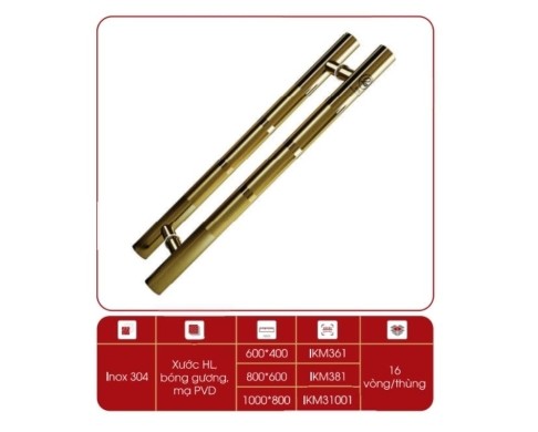 Khám phá tay nắm cửa inox ROY IKM với thiết kế đẹp mắt, chất liệu inox 304 cao cấp và công nghệ mạ vàng PVD. Đảm bảo độ bền bỉ và tính thẩm mỹ cao, phù hợp với mọi không gian kiến trúc